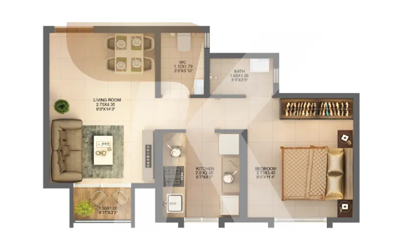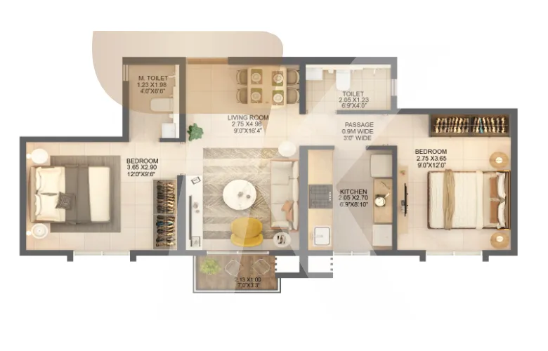 | 2 BHK | 630 sqft | 89.00 L |