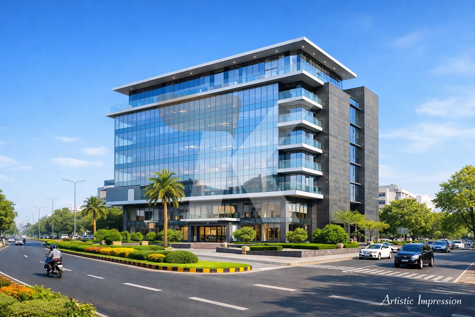 An individual corporate house in this location provides a standalone commercial property ideal for corporate offices, showrooms, or company headquarters. Such properties typically feature modern glass façades, spacious office floors, dedicated parking facilities, and high-quality construction designed for professional business operations. The advantage of having an independent corporate house is enhanced brand visibility, privacy, and the ability to customize the entire space according to the company’s requirements. The road is also surrounded by premium commercial projects like Aaron Spectra that offer showrooms and office spaces in one of the city’s most upscale business locations.